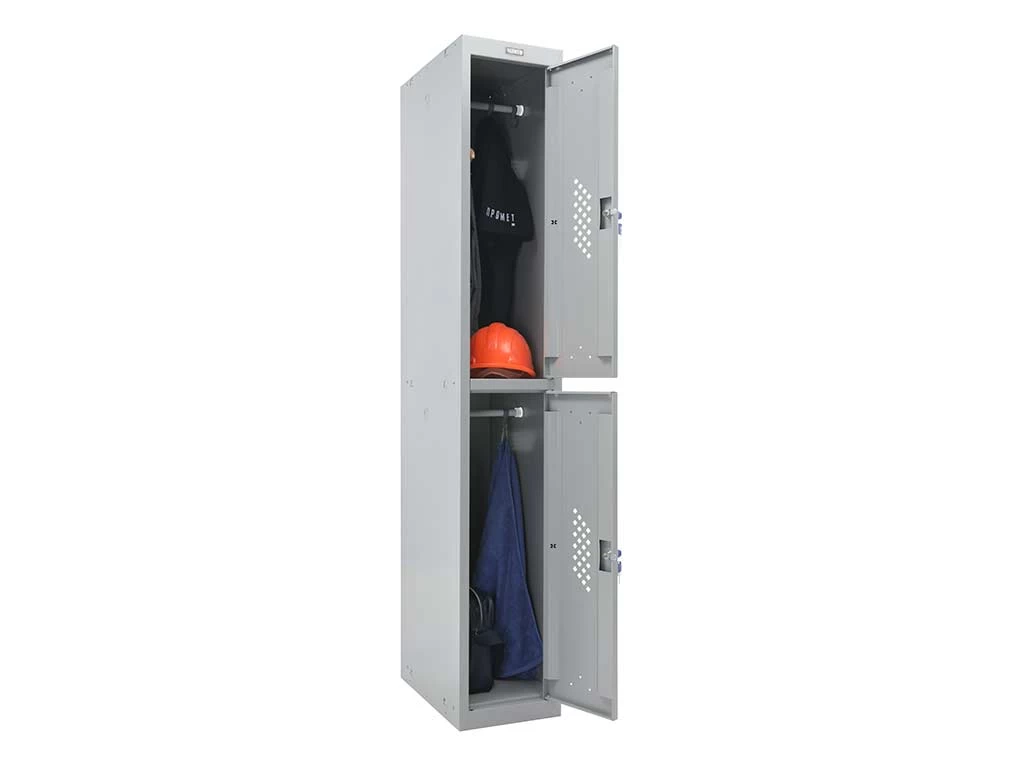 Шкаф из двух секций - практично и удобно, можно вместить больше вещей, при этом он занимает такую же площадь , как и одностворчатый шкаф. Этот момент стоит учесть, если народу много, а места в помещении мало, как, к примеру у нас на предприятии. Поэтому мы выбрали именно эту модель. Установлен хороший замок. Единственный момент, поставляется шкаф в разобранном виде, поэтому будьте готовы его собирать. Сборка без саморезов!