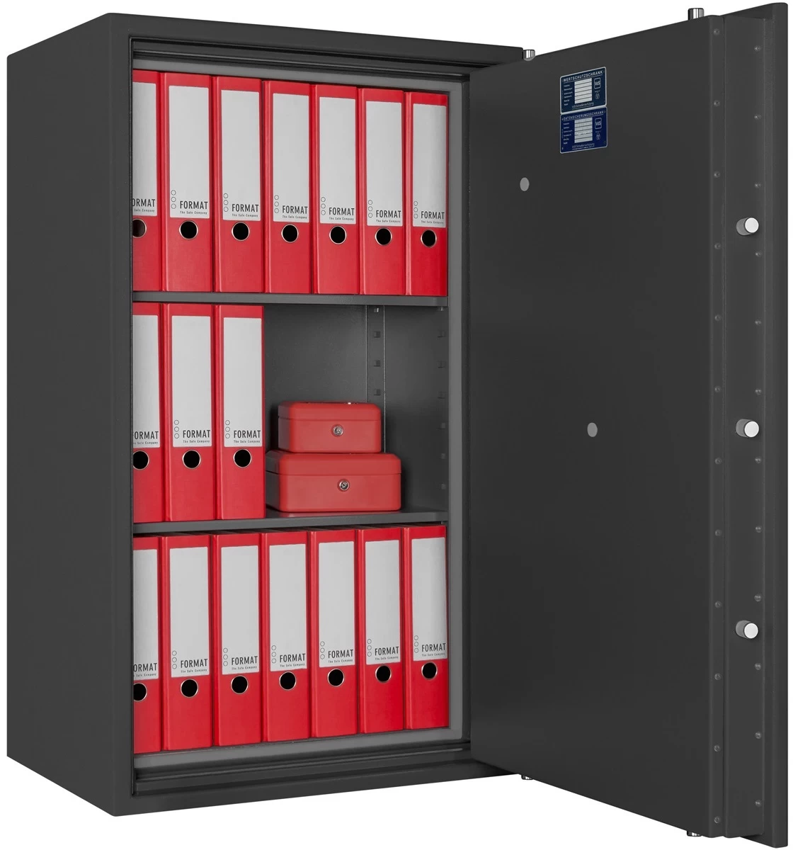 Произведены в Германии компанией FORMAT Tresorbau GmbH & Co. Эта компания, основанная более тридцати лет назад, является одним из лидирующих производителей сейфов в Европе с огромными объёмами продаж по всему миру, а за последнее десятилетие прочно завоевала высокую репутацию и на российском рынке. Format Paper Star Pro 3 CL – универсальный сейф превосходного качества, предназначенный для защиты крупных сумм денег, ценной собственности и документов в любых экстремальных ситуациях: он успешно сбережёт вашу собственность и от покушения взломщиков, и от порчи в случае пожара. По итогам ряда тестов, проведённых в лабораториях Format, модель сертифицирована: